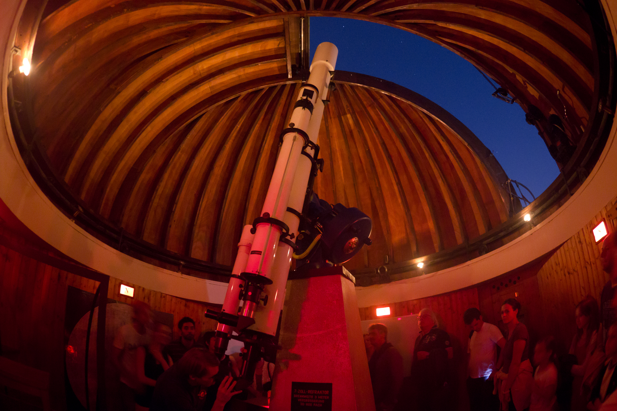 in 35m Höhe zwei Kuppeln und drei Schutzhütten: historischer 10cm Merz-Refraktor, 7'' Fraunhofer (17,5cm, f=3m) mit H-alpha Filter, 10'' Schaer Refraktor (25cm, f=4m), 16'' (40cm) Schmidt-Cassegrain-Teleskop mit CCD für Video-Astronomie, 50-cm-RC-Spiegelteleskop (2020), 80-cm-Cassegrain Spiegelteleskop (f=8m) 2005. Zeiss-Planetarium - 30 Sitzplätze.